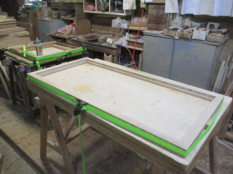 ステンドグラス教室の生徒様の額と布製品を入れるお客様の額です。